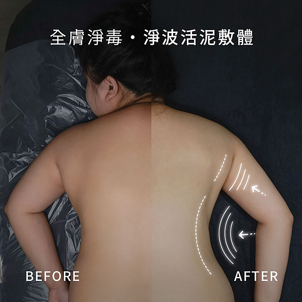 包裹方式:取適量泥敷於全身,穿上雨衣,開啟浴室暖風,等待30分鐘後清洗(沒有浴室暖風就直接穿雨衣就好)