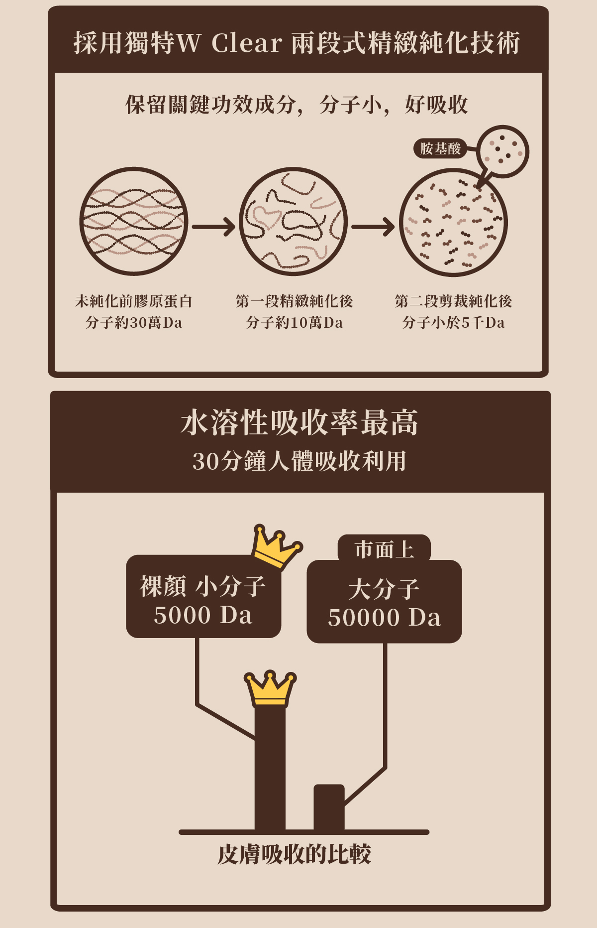 精選日本專利小分子膠原胜肽,搭配英美澳多國認證的水解魚蛋白,