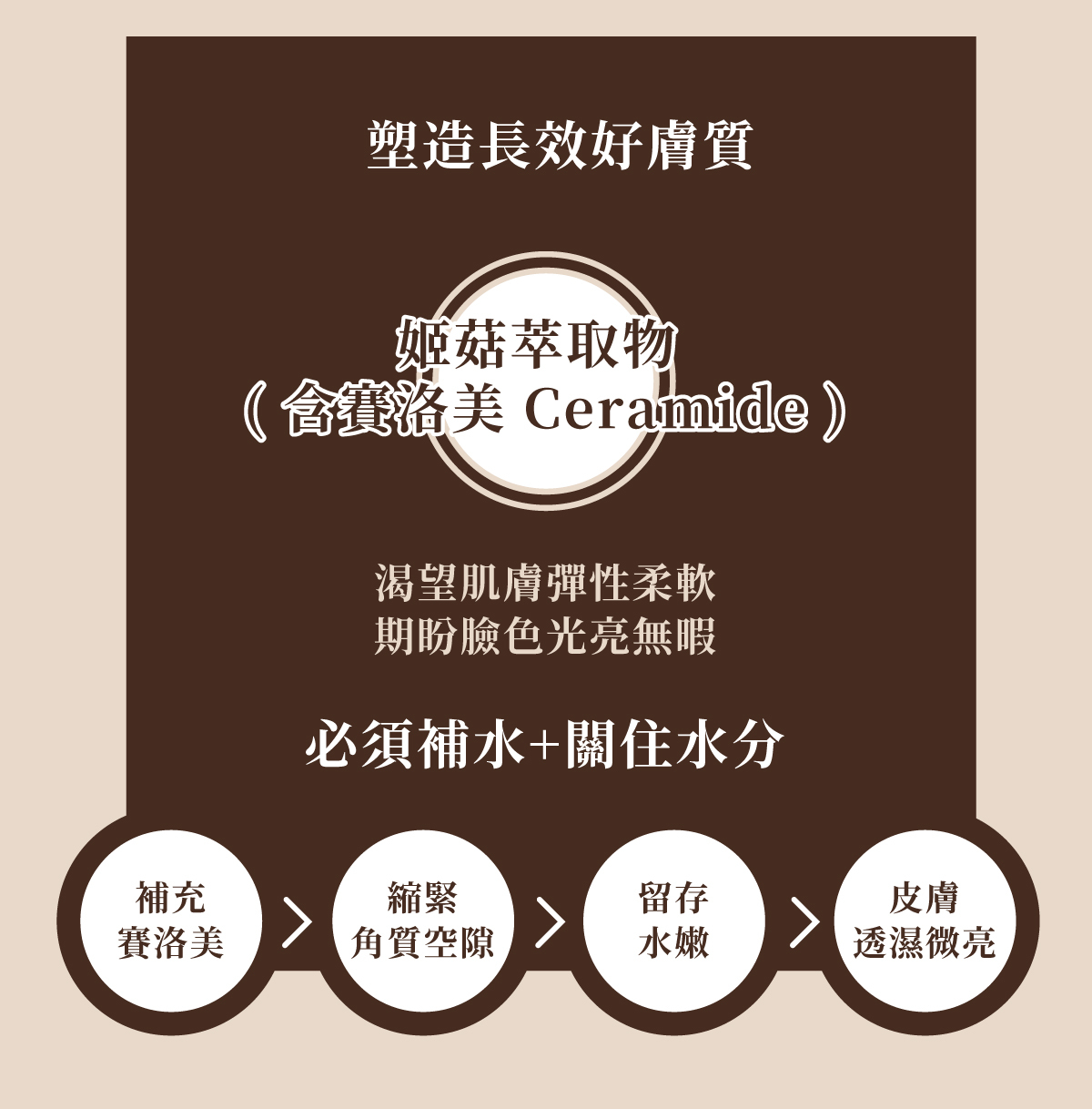 幫助肌膚從內在打好保濕基礎,撫平乾燥細紋,恢復柔嫩彈潤的裸顏光采。