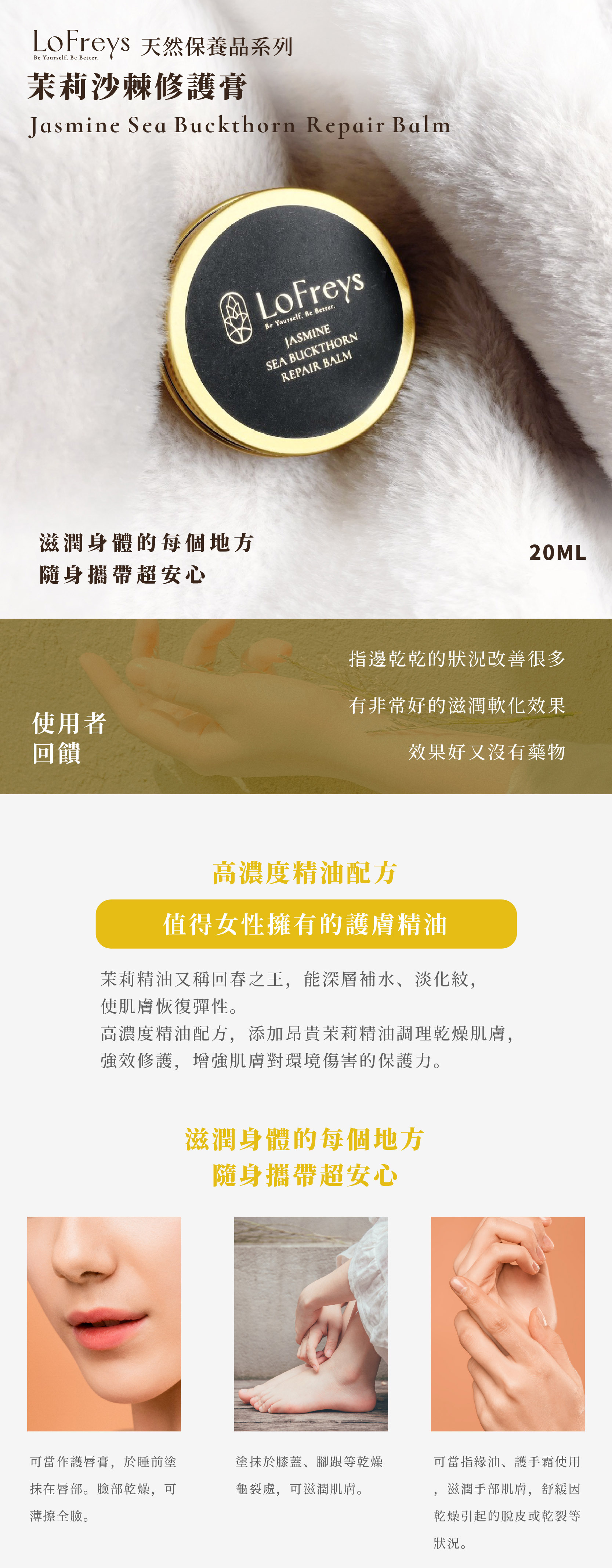 高濃度修護膏,茉莉與沙棘的滋潤能量,呵護妳的每一寸肌膚。
