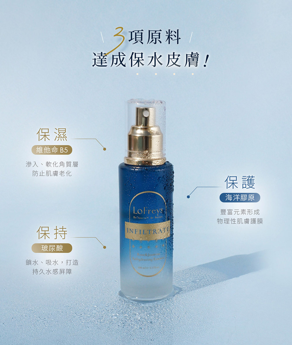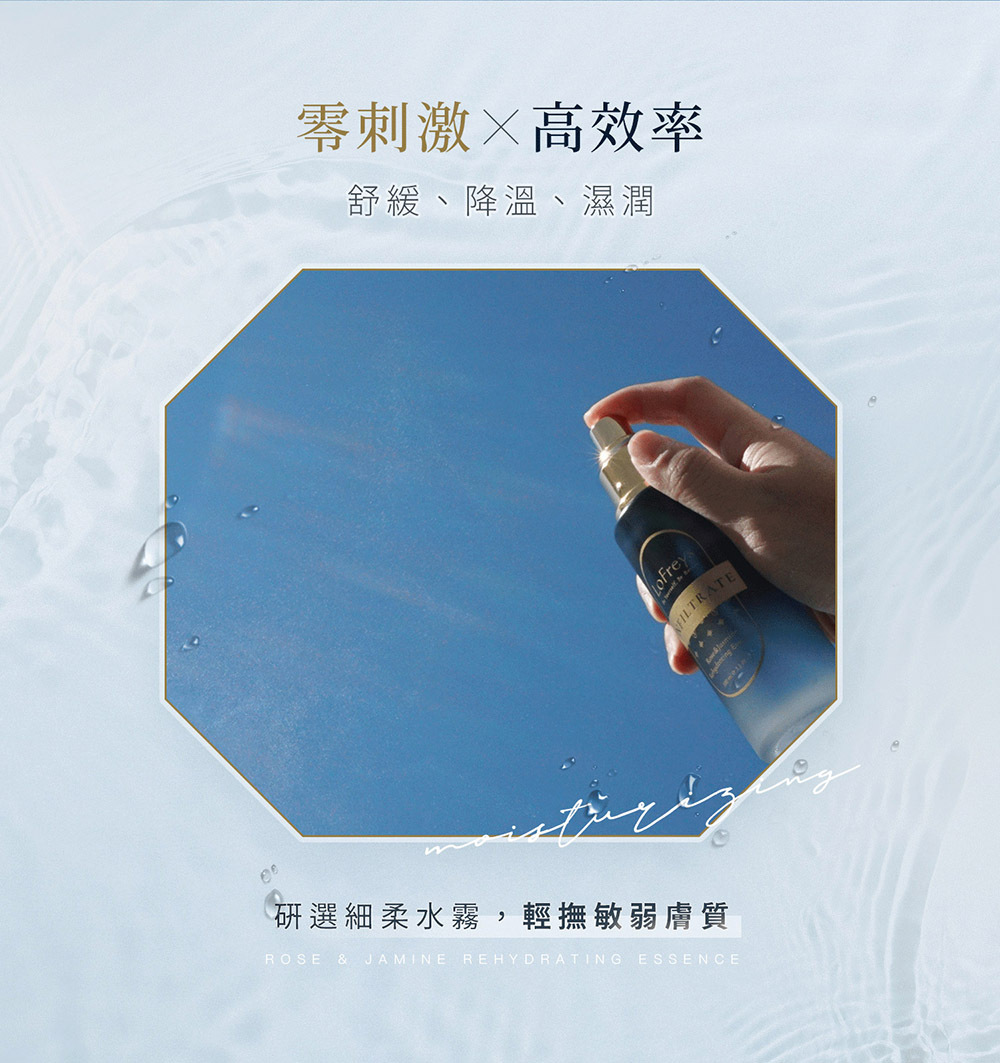 嚴選玫瑰與茉莉雙重花萃為基底,並注入珍貴稀有成分,讓保濕續航力全面升級。