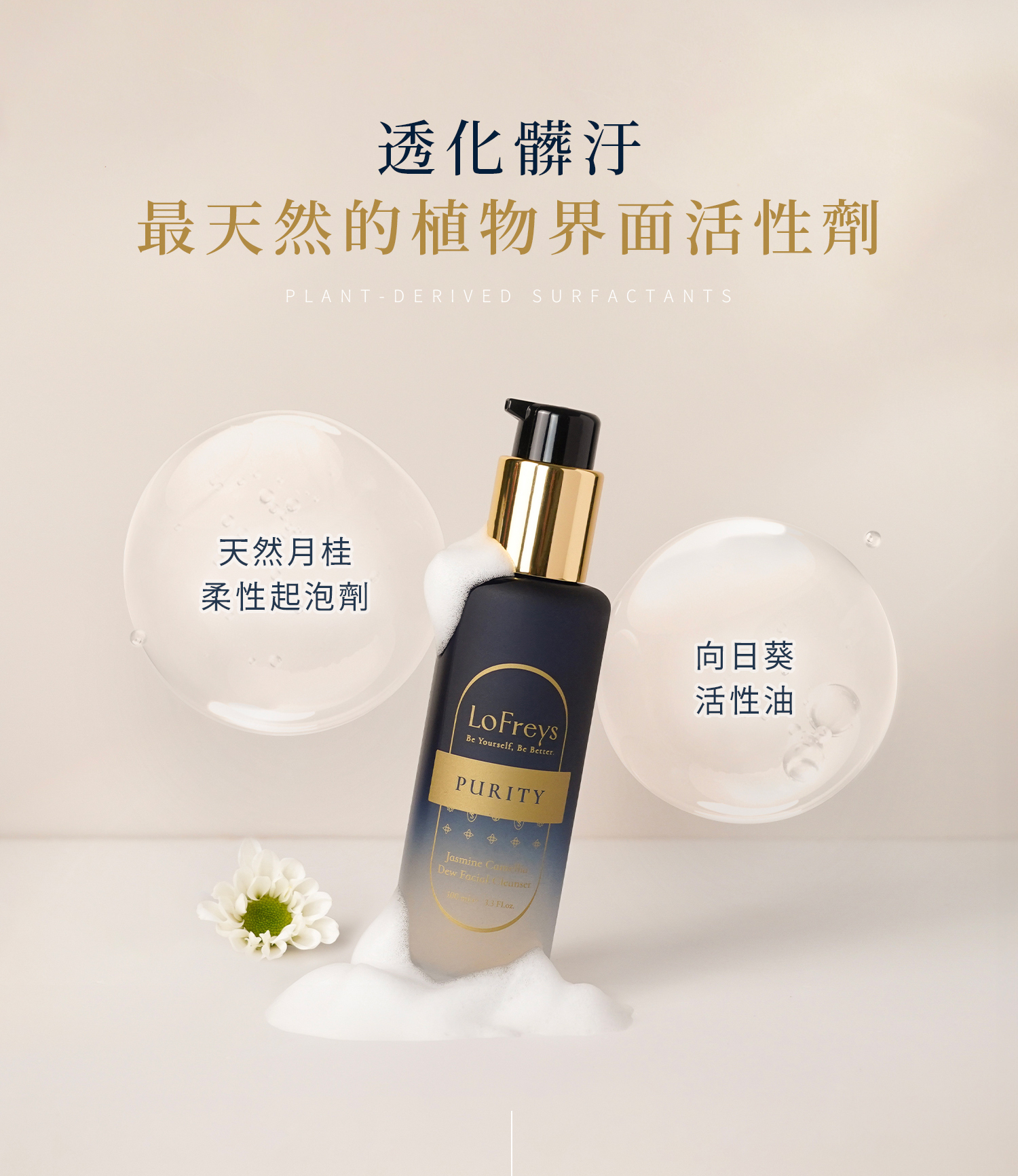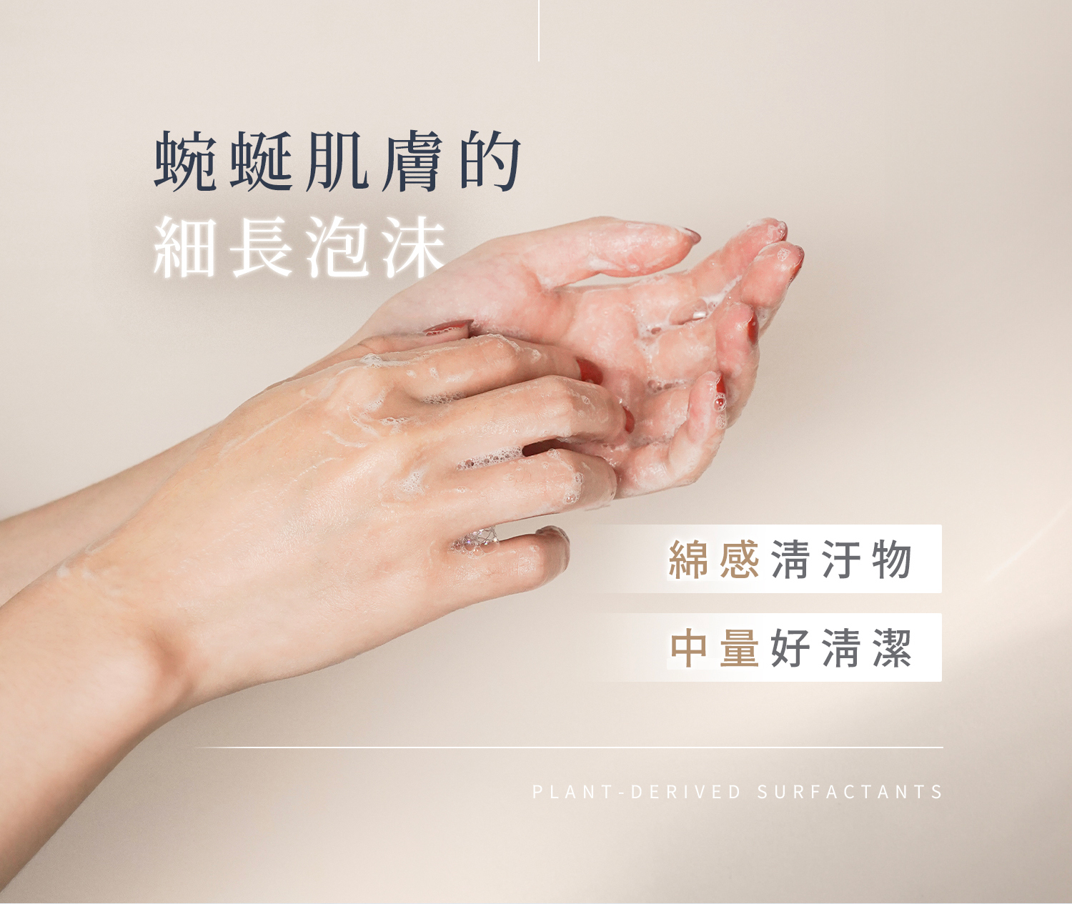 結合茶花、茉莉、玫瑰的細膩香氣,搭配高穩定性的天然萃取,讓泡沫柔滑不刺激,洗後不乾澀、不繃緊,只留下細緻柔嫩的膚觸。