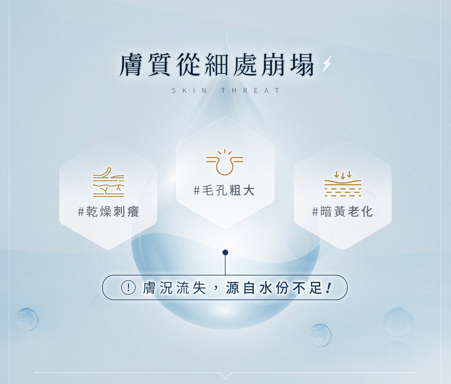 小分子高濃度保濕成分,快速滲透肌膚底層,全面提升水嫩感,適用於各種膚質。
