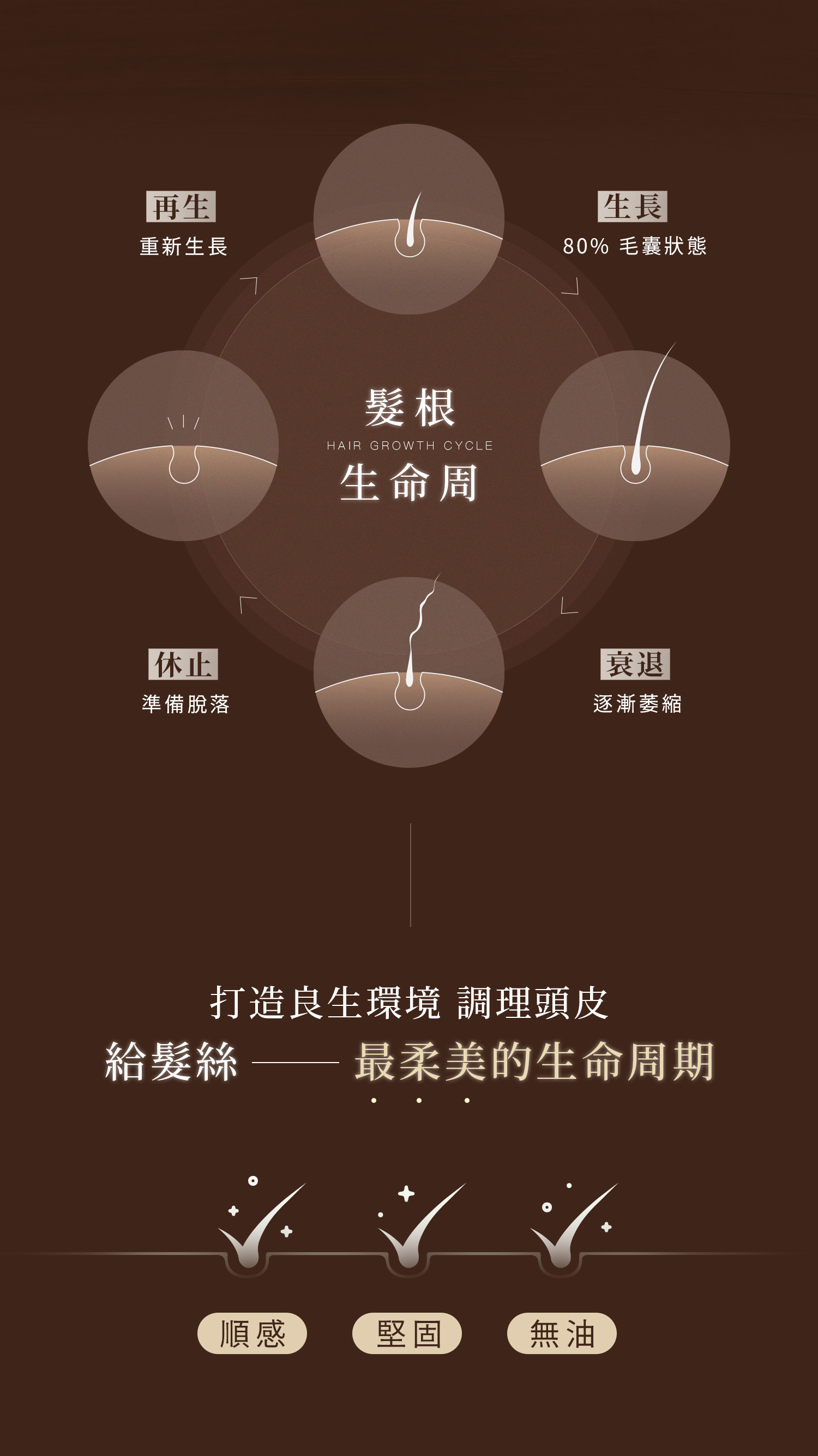 洗淨頭皮與髮絲,維持髮根健康。