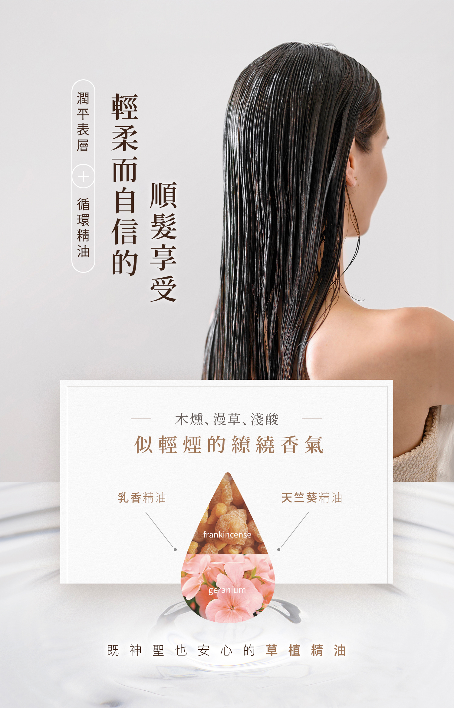 擁有乳香、天竺葵精油,並享受蜂蜜精華、橄欖果油、植物水解蛋白帶來的植萃調理。修復高度受損毛髮,包含髮絲分岔、斷髮、缺乏光澤等。