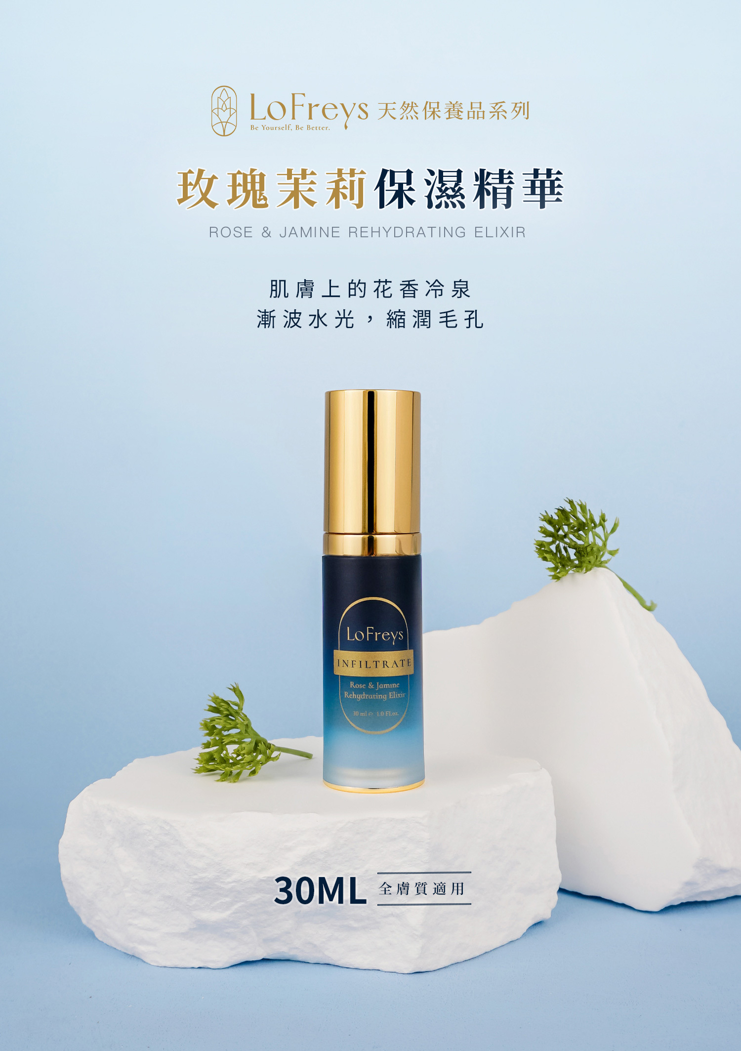 結合玫瑰與茉莉精油,搭配花草萃取物,溫和淨化毛孔、深層補水、細緻膚質,讓肌膚宛如花瓣般柔嫩透亮。