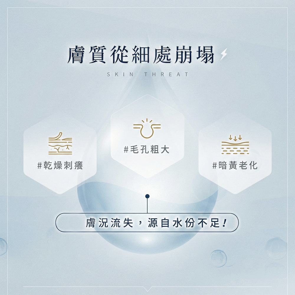 這瓶精華不只補水,而是透過六大經科學驗證的活性成分,從保濕、穩定、彈潤、透亮、平衡、舒緩六個面向,打造每日都能安心使用的高效調理配方。