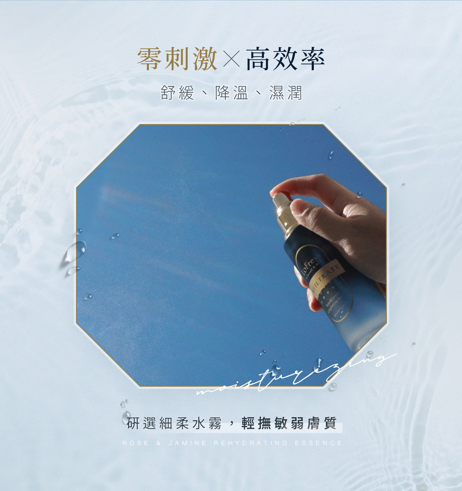 選用大馬士革玫瑰與茉莉純露,細緻滲透乾燥肌膚,為肌膚注入清新潤澤。