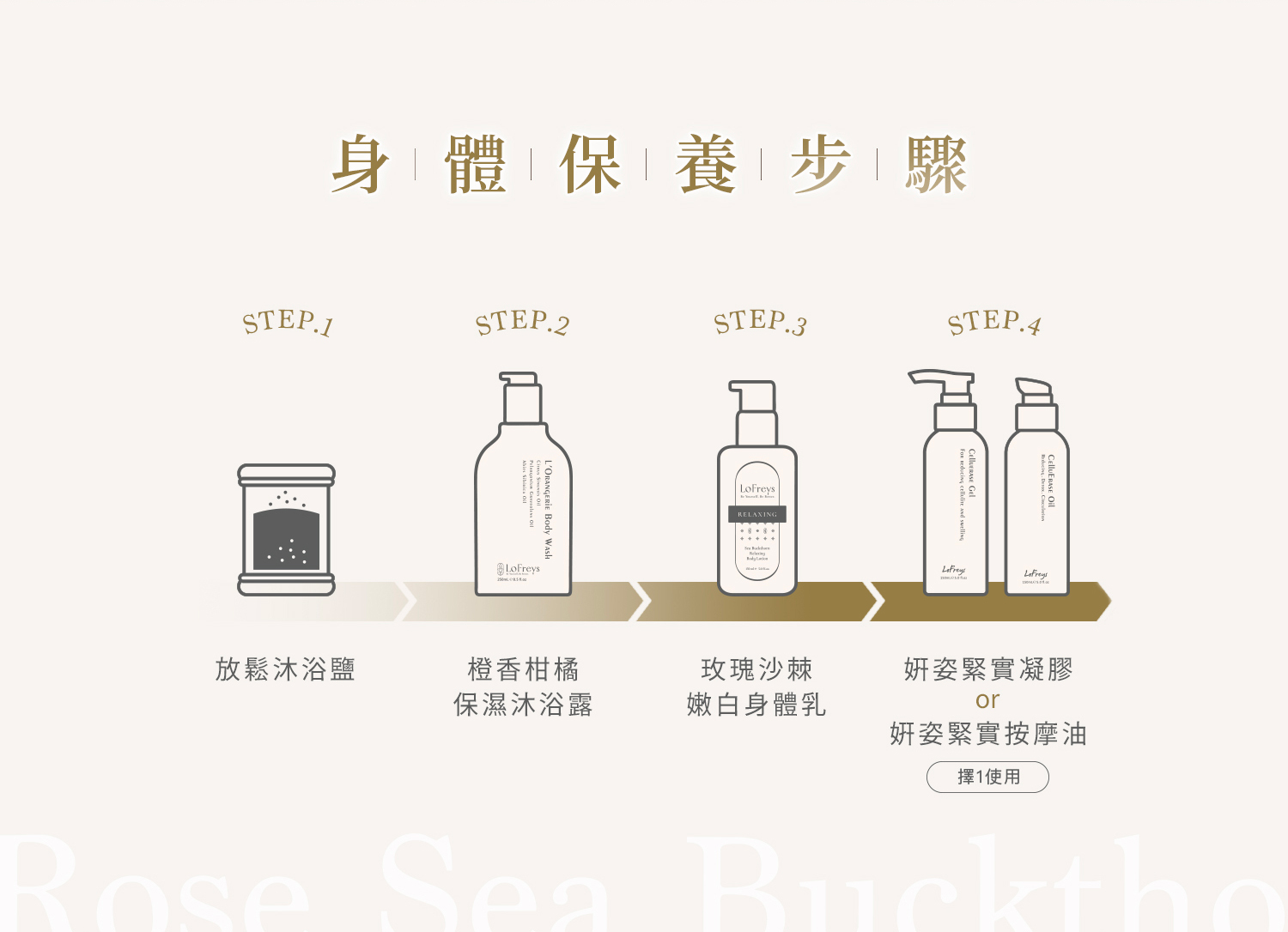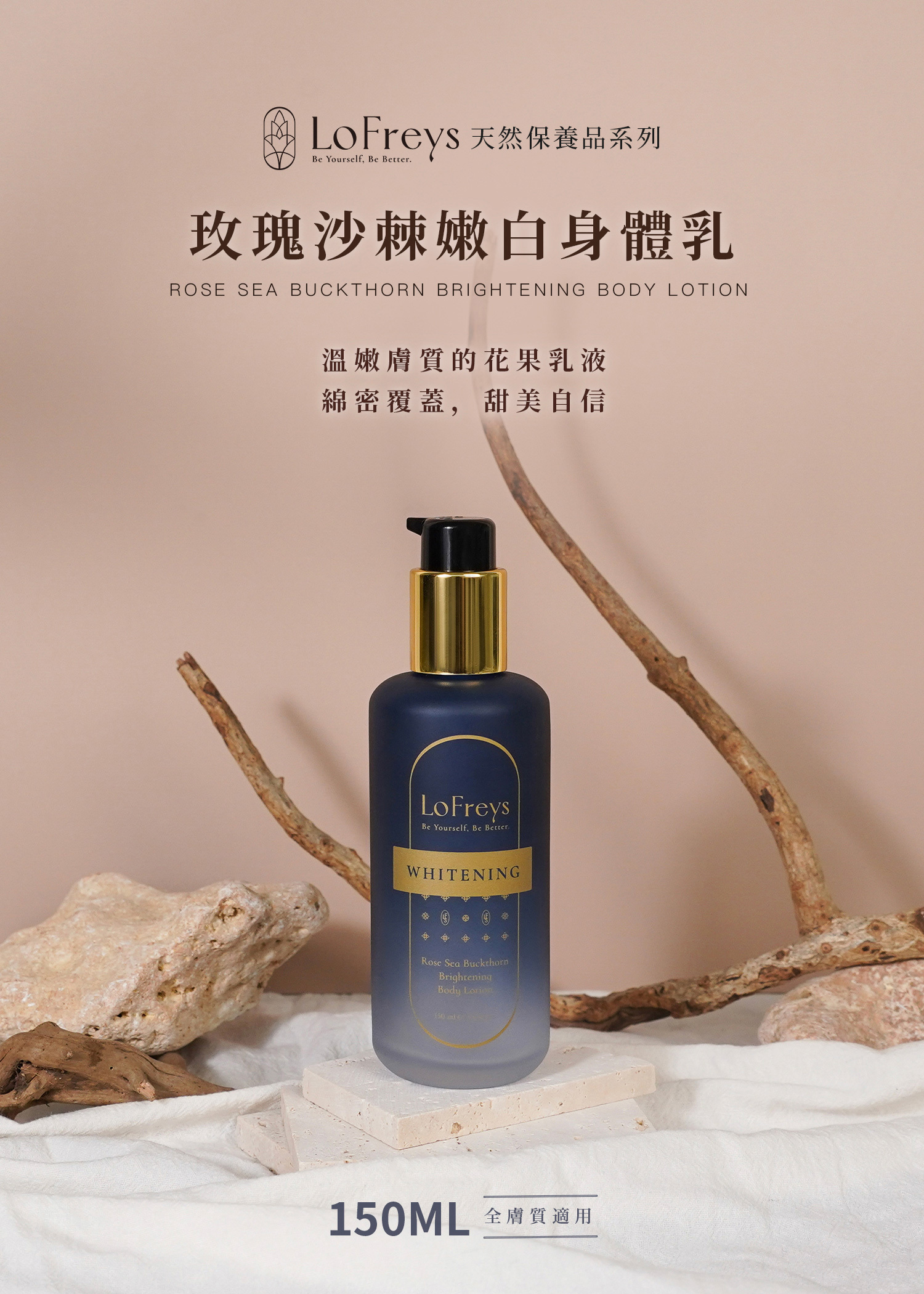 我們選用與臉部保養等級相同的高規格配方,將沙棘果油的修護力,結合高濃度維他命C與E,深層滋養乾燥肌膚,讓全身的膚觸都柔軟透亮。