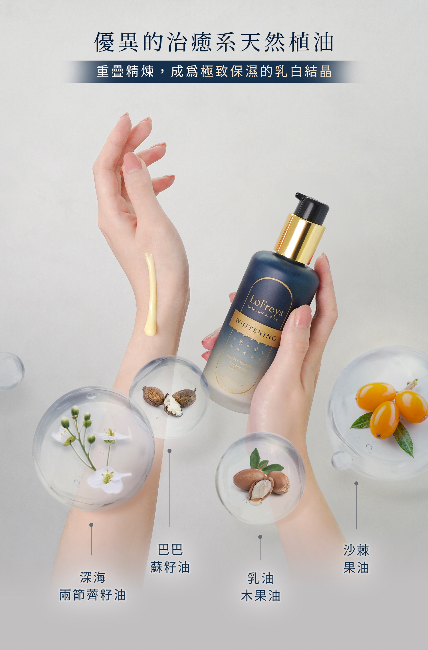天然植物精油保濕滋養,幫助全身皮膚亮白柔軟。