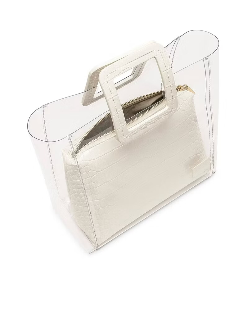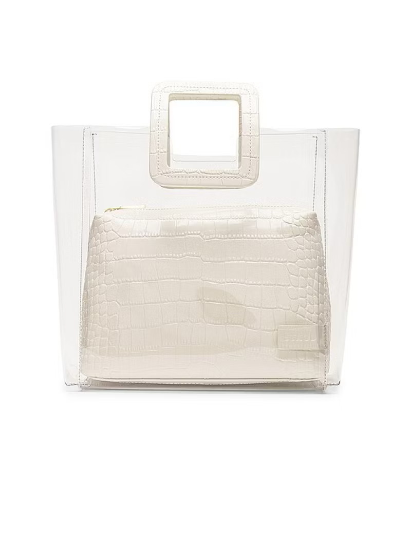 STAUD SHIRLEY 透明果凍托特包 米白色鱷魚皮紋
