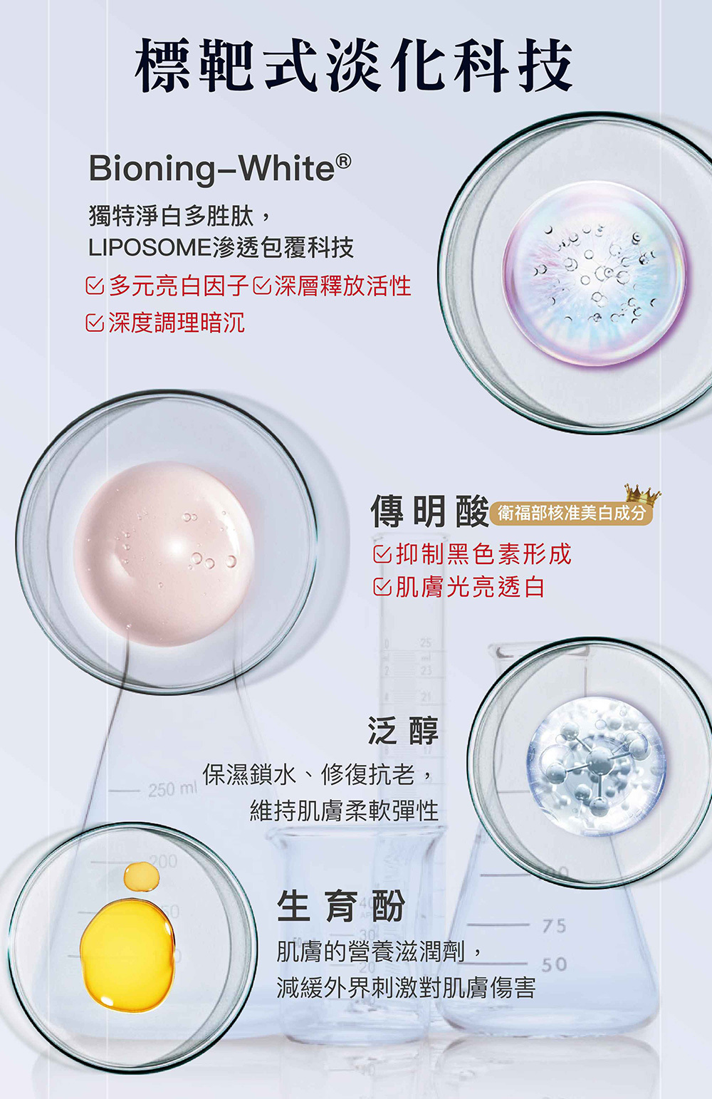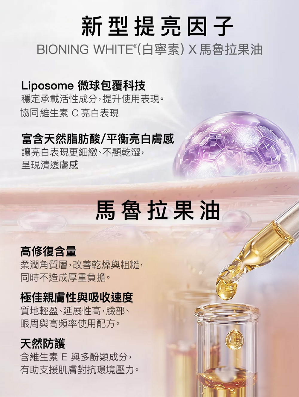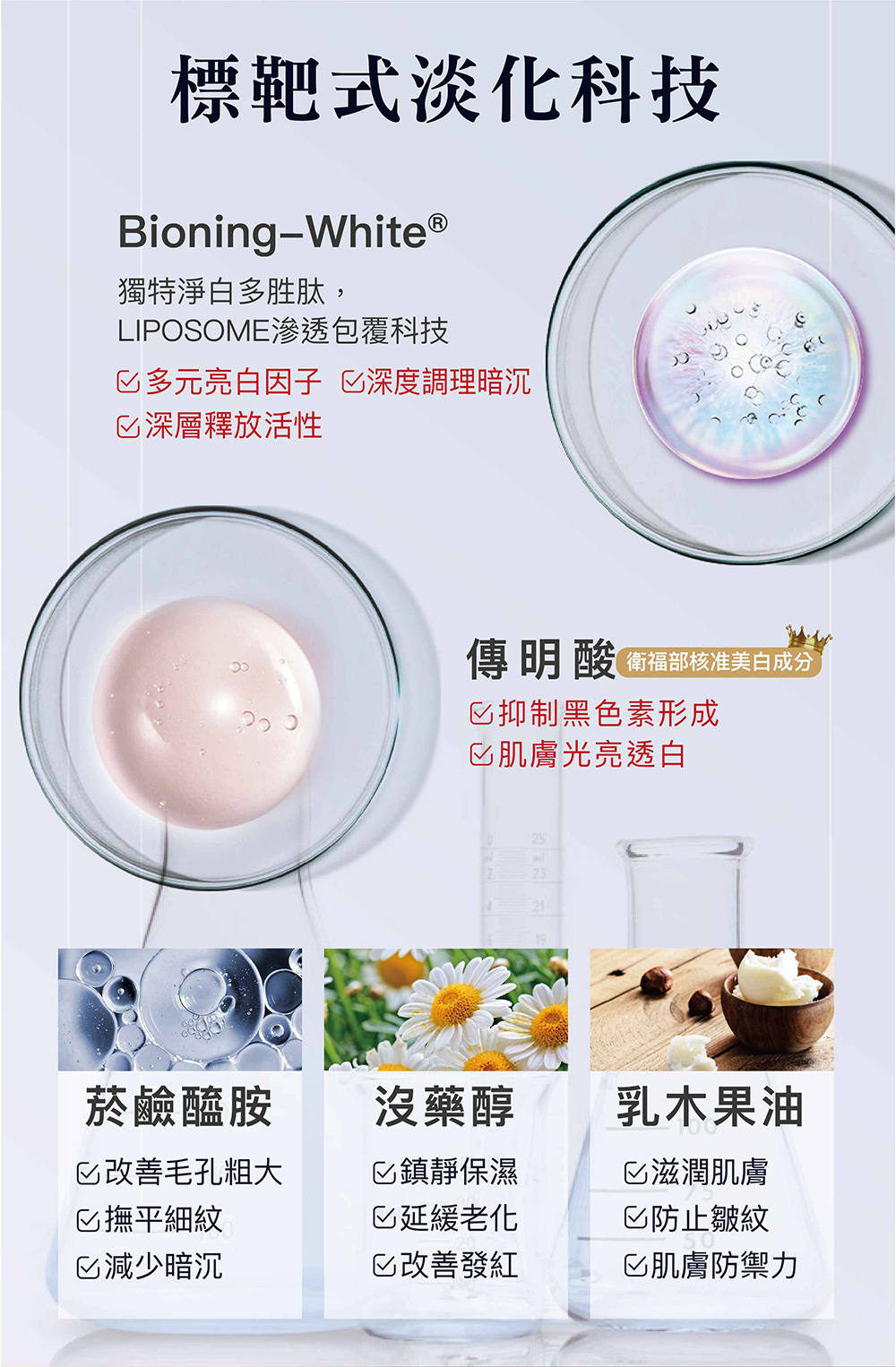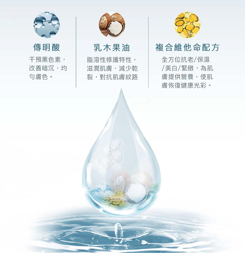 結合「穩定膚況」與「淡化暗沉」雙系統,同步建立肌膚防禦力,並針對已形成的膚色不均進行調理。