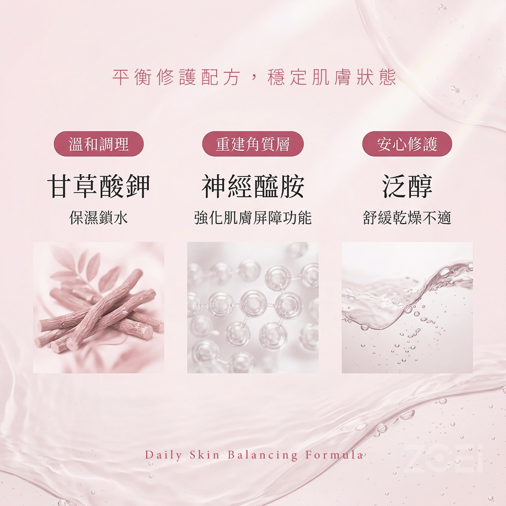 同步調理油脂、舒緩不適,使膚況回歸穩定,呈現細緻乾淨的自然光澤。