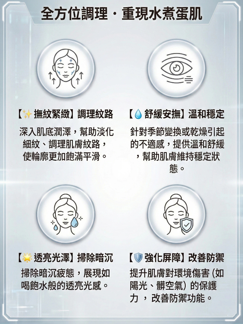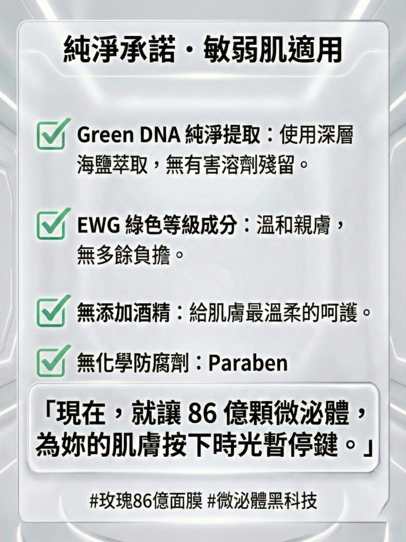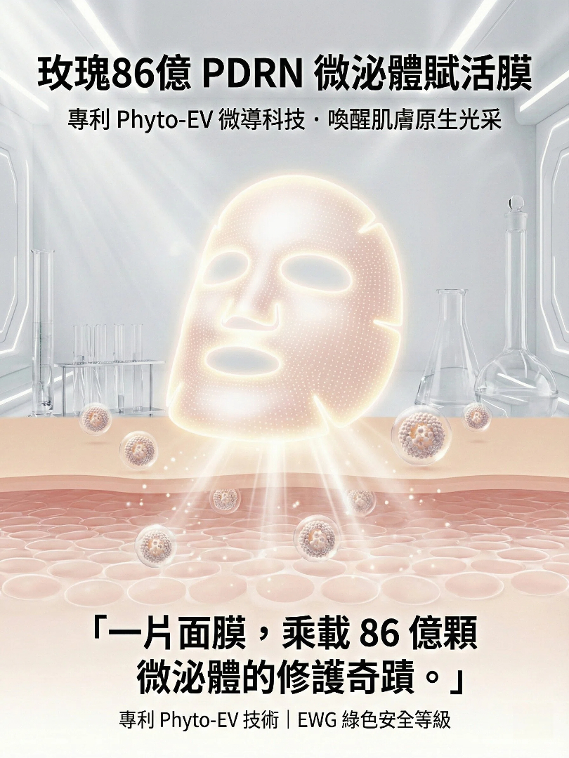如果一般面膜是表面補水,那這款賦活膜就是深層的「潤澤」與「穩膚」。 結合「高科技微泌體的滲透力」與「PDRN 的修護能量」,在短短 15 分鐘內,感受肌膚變得更加細緻、水嫩、有彈性。